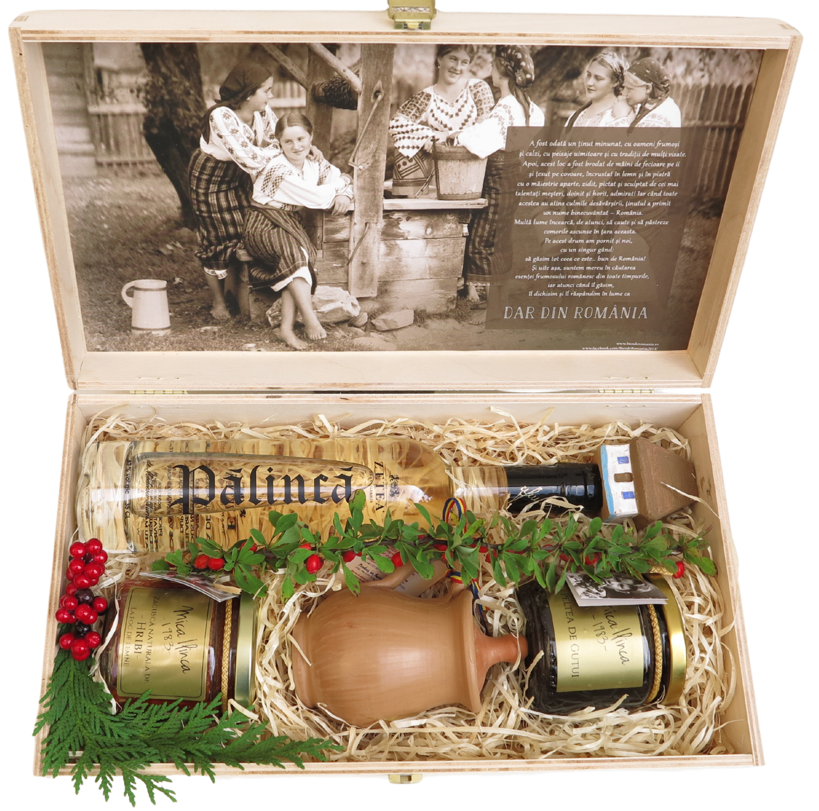 Cadoul ideal pentru cei care apreciază gusturile autentice românești. Această selecție reunește bunătăți tradiționale atent alese de la producători locali, frumos prezentate într-o cutie din lemn DAR din România. Un dar elegant și original pentru oameni dragi, perfect pentru sărbători, ocazii speciale sau cadouri corporate.