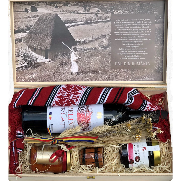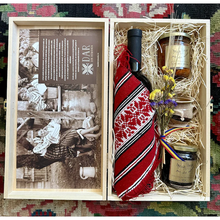 Cadoul ideal pentru cei care apreciază gusturile autentice românești. Această selecție reunește bunătăți tradiționale atent alese de la producători locali, frumos prezentate într-o cutie din lemn Dar din România. Un dar elegant și original, perfect pentru sărbători, ocazii speciale sau cadouri corporate.