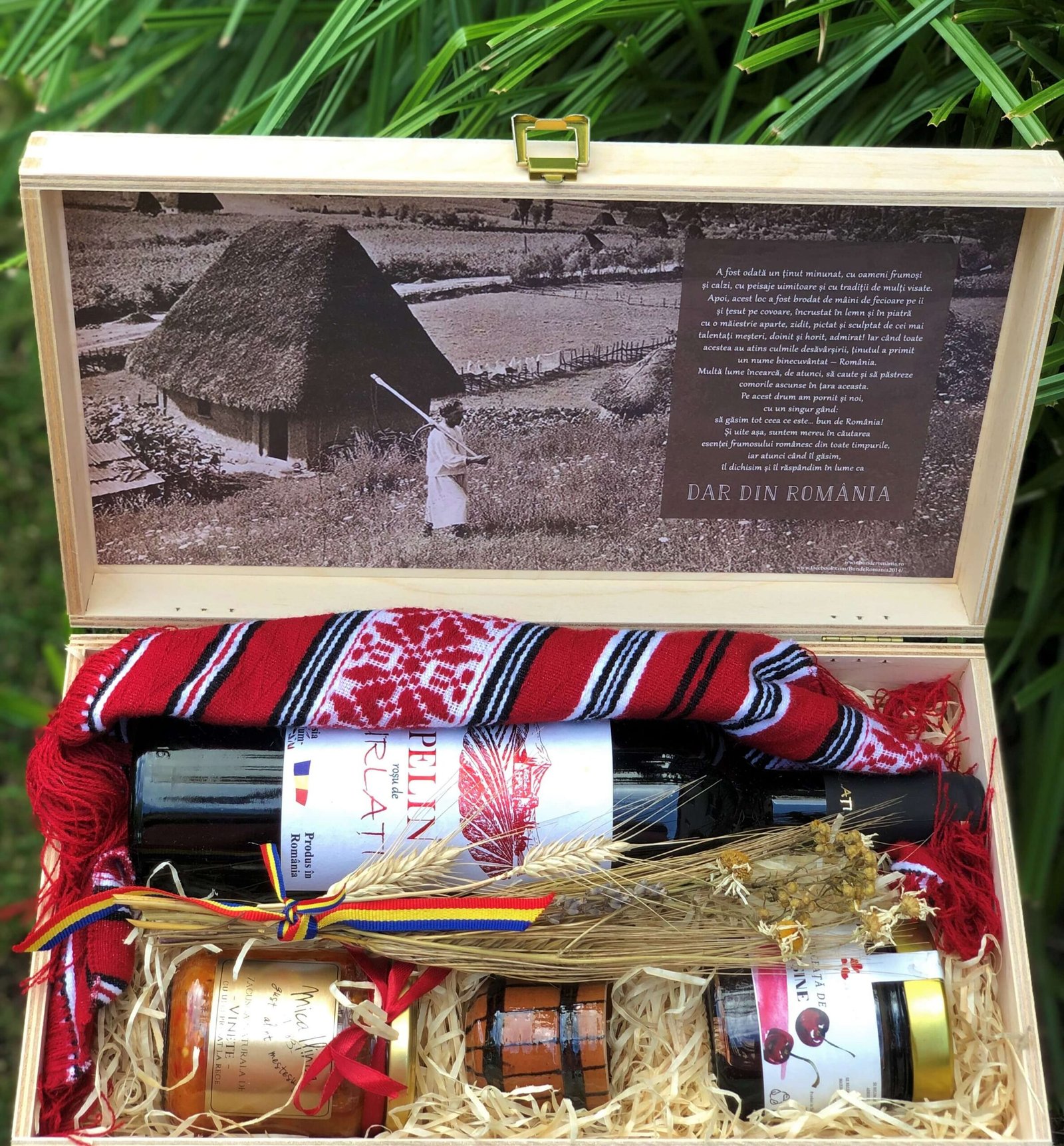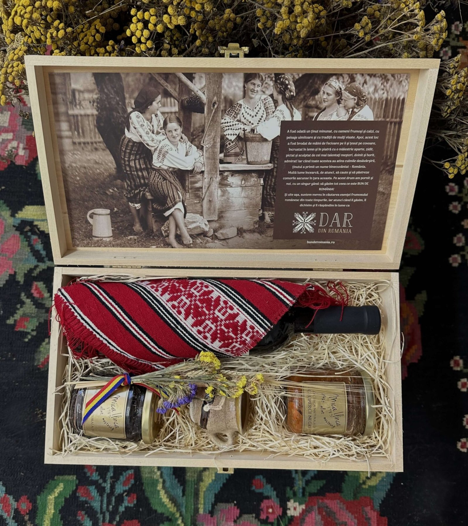 Cadoul ideal pentru cei care apreciază gusturile autentice românești. Această selecție reunește bunătăți tradiționale atent alese de la producători locali, frumos prezentate într-o cutie din lemn Dar din România. Un dar elegant și original, perfect pentru sărbători, ocazii speciale sau cadouri corporate.